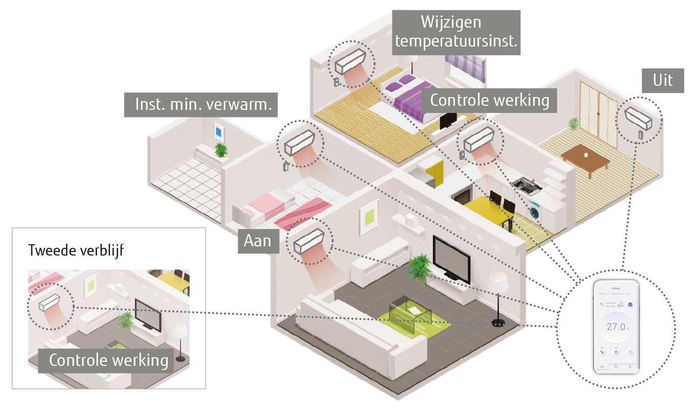 Vergeten uw airco uit te zetten voordat u het huis verliet? Geen probleem! Met enkele tikken op uw smartphone kunt u uw systeem uitschakelen, ongeacht waar u zich bevindt. Deze flexibiliteit zorgt niet alleen voor gemak, maar draagt ook bij aan energiebesparing en kostenefficiëntie.
